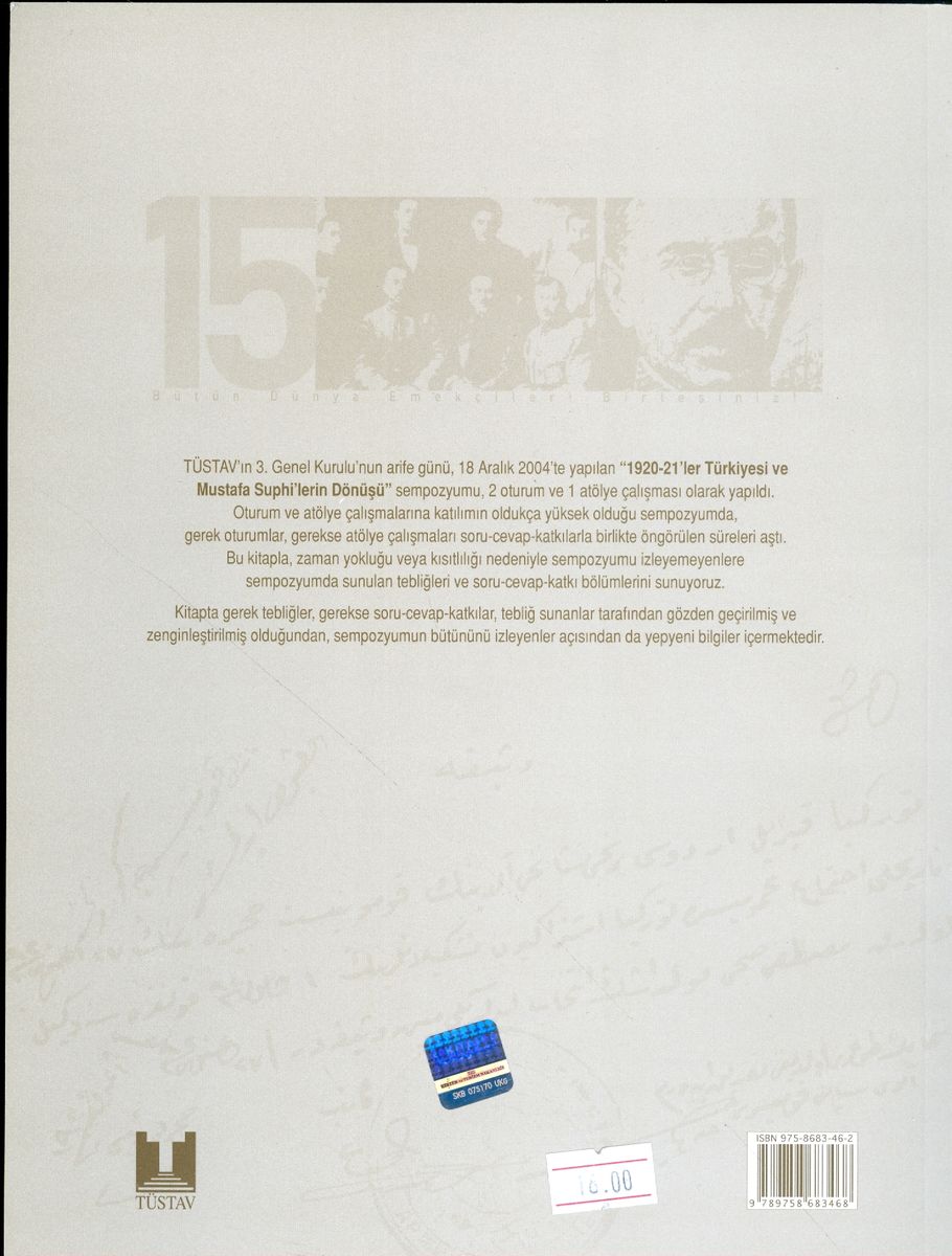 Geçtiğimiz yılın sonlarında, TÜSTAV'ın 3. Genel Kurulu'nun arife günü, 18 Aralık 2004'te yapılan "1920-21'ler Türkiye'si ve Mustafa Suphi'lerin Dönüşü" sempozyumu, 2 oturum ve 1 atölye çalışması olarak tasarlandı.