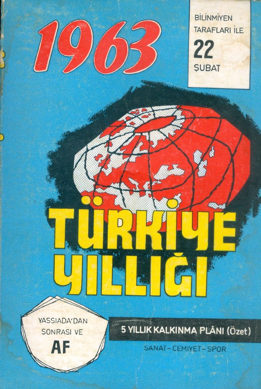 1963 Türkiye Yıllığı geçen yılın önemli olaylarını ve 1963 başında memleketimizin durumunu belirten bir almanaktır. 1962'nin en önemli olayları olan 22 Şubat, AF ve 5 Yıllık Kalkınma Planına yıllıkta geniş yer verilmiştir.
