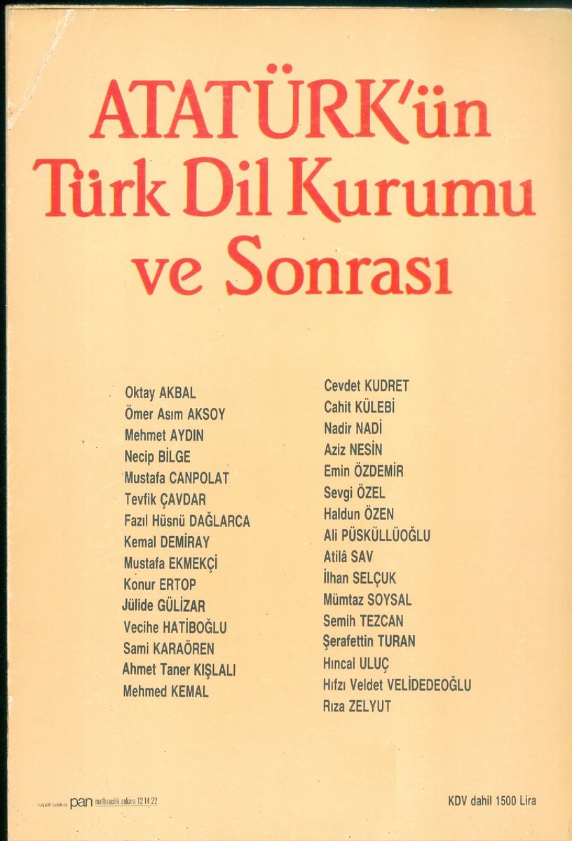 Bu yapıt. Türk Dil Kurumunun bu benzersiz serüvenini yazgı sayıp boyun eğmeyen, tersine güç koşullar altında bile ola- . ,bildiğince karşı çıkışı sürdüren kişilerin katkılarıyla oluştu.