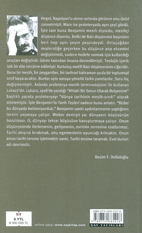 Son birkaç yıldır Walter Benjamin okudum, çalıştım hep. Ahmet Cemal'in ve diğerlerinin çevirilerini, Oğuz Demiralp'in kitabını, Nurdan Gürbilek'in derlemesini, ulaşabildiğim İngilizce ve Fransızca yapıtlarını ve onun hakkında yazılanları. Bu arada son üç yıldır Mimar Sinan'da ve Bilgi'de ki öğrencilerimin içi dışı Benjamin oldu. Her yıl mutlaka bir dersimi ona ayırmadan, her derste alakalı alakasız sözü ona getirmekten kendimi alamaz oldum. Tüm öğrencilerime sabırlarından ve katkılarından dolayı teşekkür ediyorum. Ayrıca TÜBA'nın doktora sonrası bursu sayesinde 2002 yazını Benjamin çalışmak ve onun izini sürmek için Paris'te geçirdim. Bu sırada Port-Bou'ya gitme ve Benjamin'in mezarını ziyaret etme fırsatım da oldu. TÜBA yetkililerine gönülden teşekkür ediyorum, bana böyle fırsatı verdikleri için. Amacım onun hakkında bir kitap yazmaktı. Hatta kitabın adı bile konmuştu: Benjaminia. Bu arada Say Yayınları editörü Murat Batmankaya bana bir Walter Benjamin derlemesi yapmamı önerdi, uzunca bir serinin bir parçası olarak. Böylece sorumluluklar çoğaldı. Her ikisini de çok daha önce bitirebilmeyi ummuştum. Ama bir türlü olmadı. Benjamin girdabı beni de içine çekti, bir türlü kurtulamadım. Bu arada Murat Batmankaya'ya bir teşekkür borçluyum, sabrı ve anlayışı için. Ayrıca yeni Benjamin dostları edindim bu girdabın içinde. Emrah, Tuğba, Lale, Zeliha destek oldular bana, Benjamin'i paylaştık. Onların sayesinde eldeki çalışma ortaya çıktı. Ama hala eksik hissediyorum, tamamlanmamış, bitmemiş. Ama asla onların suçu değil bu, kimsenin suçu değil bu, bu benim suçum sanki. Onun hakkında yapılacak her şey biraz bu kaderle yazgılı gibi. Belki bu çalışma tamamlandı ama Benjamin hala benimle, ben hala onunlayım. Benjamin'den çevrilecek metinleri seçerken zorlandım, ama Benjamin hakkındaki metinleri seçerken hiç zorlanmadım. Adorno ve Scholem, hem onun en yakın dostlarıydılar ve hem de bu iki yazı gerçekten harikaydılar...