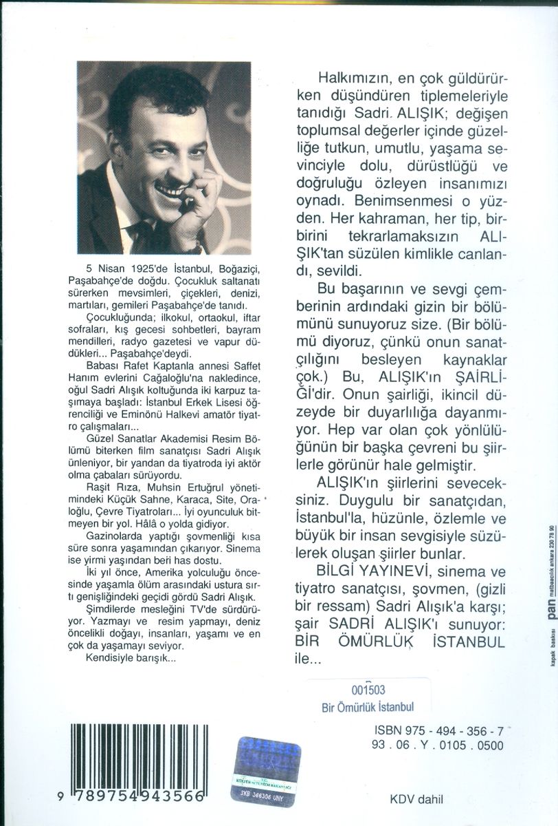 BİLGİ YAYINEVİ, sinema ve tiyatro sanatçısı, şovmen, Sadri Alışık'a karşı; şair SADRİ ALIŞIK'ı sunuyor: BİR ÖMÜRLÜK İSTANBUL ile...