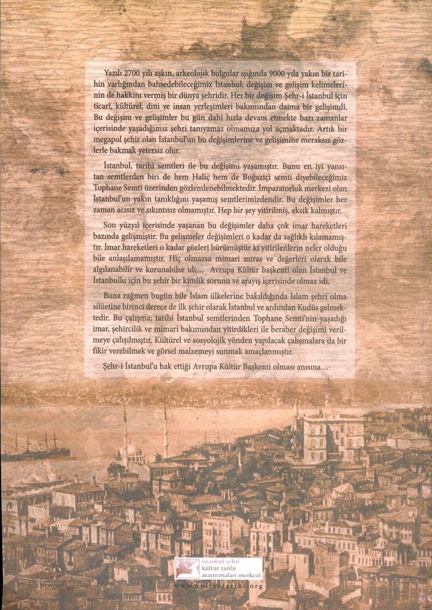 ilk şehir olarak İstanbul ve ardından Kudüs gelmektedir. Bu çalışma; tarihi İstanbul semtlerinden Tophane Semti'nin yaşadığı imar, şehircilik ve mimari bakımından yitirdikleri ile beraber değişimi verilmeye çalışılmıştır.