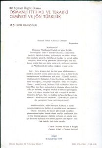 Osmanlı İttihat ve Terakki Cemiyeti ile Jön Türklük üzerine bir çalışma yapmak; aslında, büyük bir cesaret gibi görünebilir. Çalışmanın, doğal olarak böylesine geniş ve birinci elden taranması oldukça zor alanda, tüketici olmak gibi bir iddiası bulunamaz. Ancak bu konunun araştırılmasında ve diğer yakın tarih çalışmalarında, büyük bir pesimizm içine de düşmememiz gerekmektedir. Nitekim belirli bir uğraş sonucunda, hiç değilse belirli bir çizgiyi yakalamamıza imkân tanıyabilecek belgelere ulaşmak, bunları gene belirli bir teorik bütünlük içinde yorumlayabilmek mümkün olmuştur.