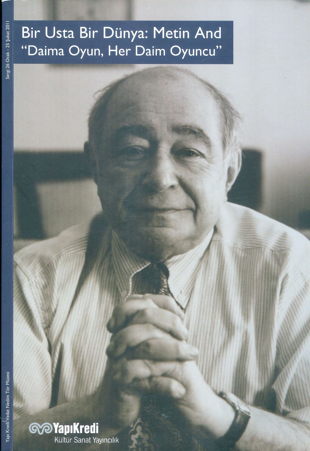 Metin And'ın kolay bir insan, eserlerinin kolay baş edilir çalışmalar olduğunu düşünmedim hiç. Bu gençlik yıllarımda da böyleydi, şimdi de... YKY'de bugüne kadar dört kitabının editörü oldum, eldekiyle birlikte üç de kitap hazırlamış oluyorum onunla ilgili. İlk ikisi 2007 tarihli: Metin And'a Armağan ve Metin And: Dokuz Kollu Bir Oyunbaz. Bu kez onu, Yapı Kredi Kültür Sanat Yayıncılık olarak, daha önce birçok bilim ve sanat insanını ağırlayan ve onlardan kalanları özenli bir sunuşla izleyici ve okurlarıyla paylaşan geleneksel "Bir Usta Bir Dünya" sergilerinden birinin konuğu olarak ağırlıyoruz. Sergi mekânı Yapı Kredi Vedat Nedim Tör Müzesi, Bir Usta Bir Dünya: Metin And "Her Dem Oyun, Her Daim Oyuncu' da bu serginin kataloğu. Bu, 1993'ten 20ll'e 16. sergi oluyor: Behçet Necatigil'den Metin And'a uzanan iz bırakmış kişilerin ustalıklı dünyaları, usta işi yapıtları, resim, belge ve özel eşyalarıyla...