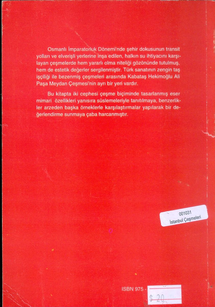 Bu kitapta iki cephesi çeşme biçiminde tasarlanmış eser mimari özellikleri yansıra süslemeleri ile tanıtılmaya, benzerlikler arzeden başka örneklerle karşılaştırmalar yapılarak bir değerlendirme sunmaya çaba harcanmıştır.