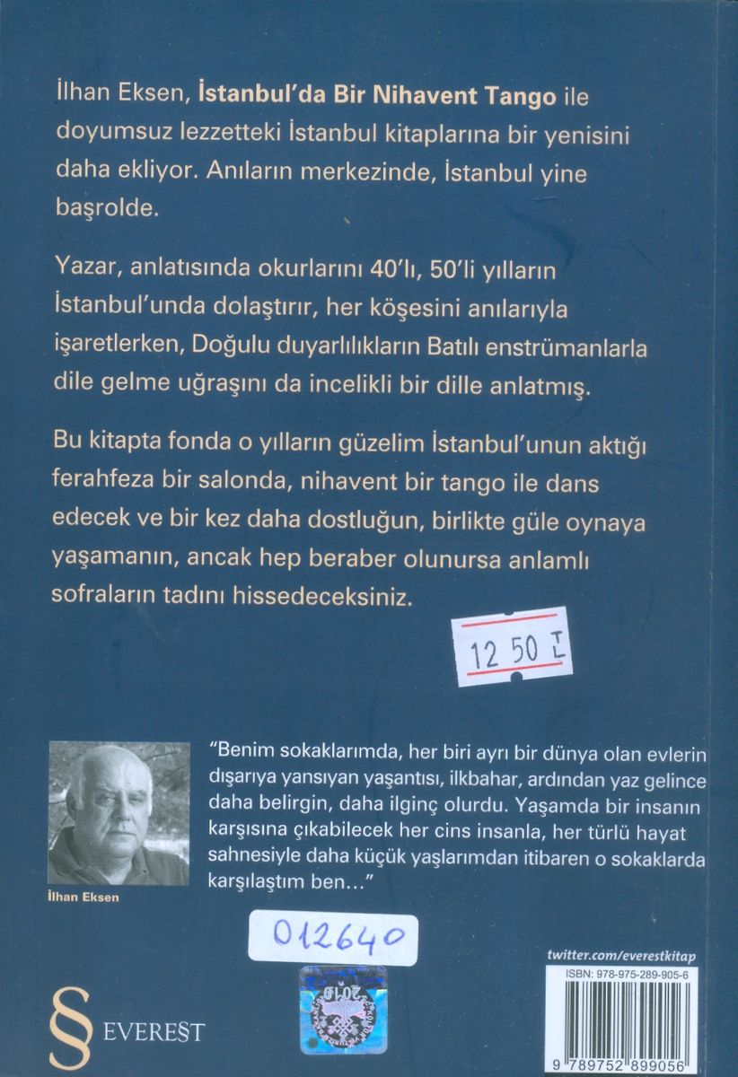 Kırklı yılların sonlarına doğru ben de hayatla tango yapmaya başladım. Kozmopolit Beyoğlu'nda, İstiklal Caddesi'nin aşağılarında, Türkü, Rumu, Ermenisi, Yahudisi bir arada sorunsuz yaşayan, birbirine saygılı kibar insanlar…
