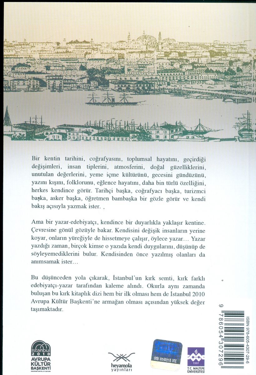 Semtlerden söz açmaksa bir bahanedir burada. İstanbul içindeki değişik yapılanmalara karşın, bütünlüğü olan bir imparatorluk ruhu taşır gizliden gizliye. Geçmişi, onun değişmeyen iklimidir. Her semtinde, her sokağında dolaşan özel rayihalı tarihi bir esinti fark edenlerin başını döndürür...