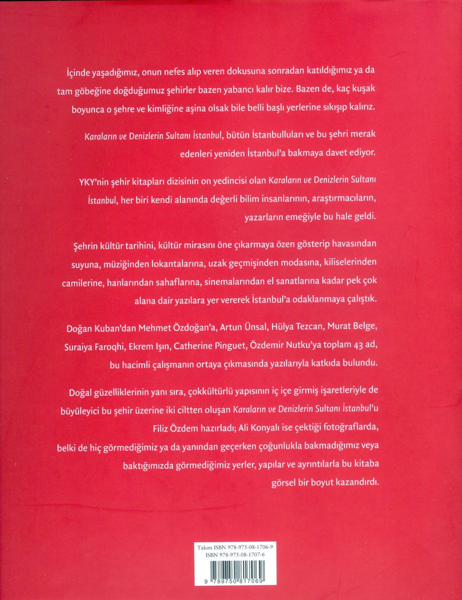 YKY'nin şehir kitapları dizisinin on yedincisi olan Karaların ve Denizlerin Sultanı İstanbul, her biri kendi alanında çok değerli bilim insanlarının, araştırmacıların, yazarların katkısıyla bu hale geldi. İstanbul için ne desek azdı, hangi konuya değinsek mutlaka bir şeyler eksik kalacaktı... İki cildi Türkçe, bir cildi İngilizce olarak hazırlanan bu hacimli çalışmada havasından suyuna, müziğinden lokantalarına, uzak geçmişinden modasına, kiliselerinden camilerine, hanlarından sahaflarına, sinemalarından el sanatlarına kadar pek çok alana dair yazılara yer verirken, şehrin kültür tarihine, kültür mirasına odaklanan bir açıdan kitabı çatmaya özen gösterdik.