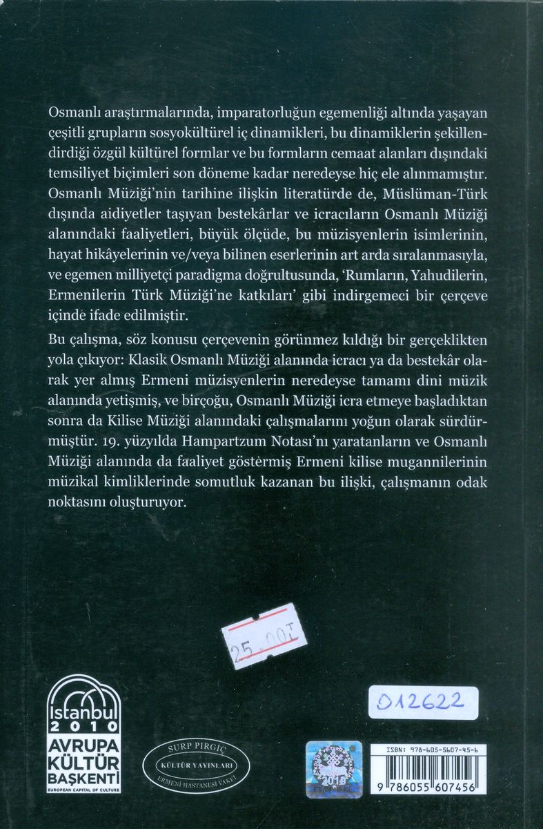 Osmanlı Müziği'nin tarihine ilişkin literatüre de yansıyan bu eksiklik nedeniyle, Müslüman-Türk dışında aidiyetler taşıyan bestekârlar ve icracıların bu alandaki 'varlık'ları şimdiye kadar büyük ölçüde isimlerinin, hayat hikâyelerinin ve/veya bilinen eserlerinin art arda sıralanmasıyla ifade edilmiş; bu verilerin işaret ettiği tarihsel gerçeklik ise, 'Rumların, Yahudilerin, Ermenilerin Türk Müziği'ne katkıları' gibi, son derece sınırlı ve birçok açıdan sorunlu bir çerçeveye indirgenmiştir. Oysa bir kültürel üretim alanının tarihsel ve sosyolojik bir bütünlük içinde kavranabilmesi için, o alanın tüm bileşenlerinin, kendi özgün dinamikleri de hesaba katılarak incelenmesi ve 'büyük resim' içinde nerede durduklarının tanımlanması gerekir.
