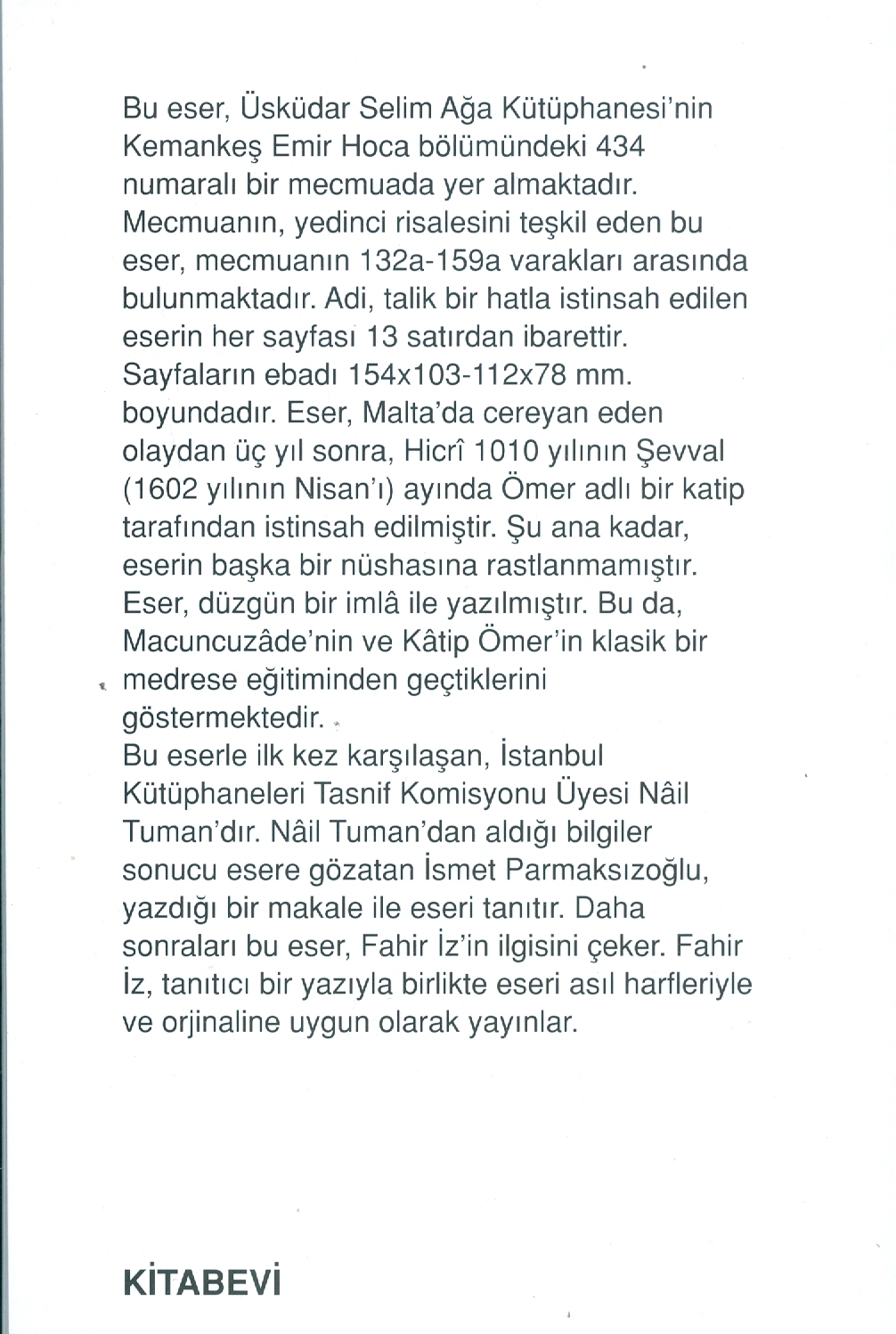 | Yazar | : | Macuncuzade Mustafa Efendi |