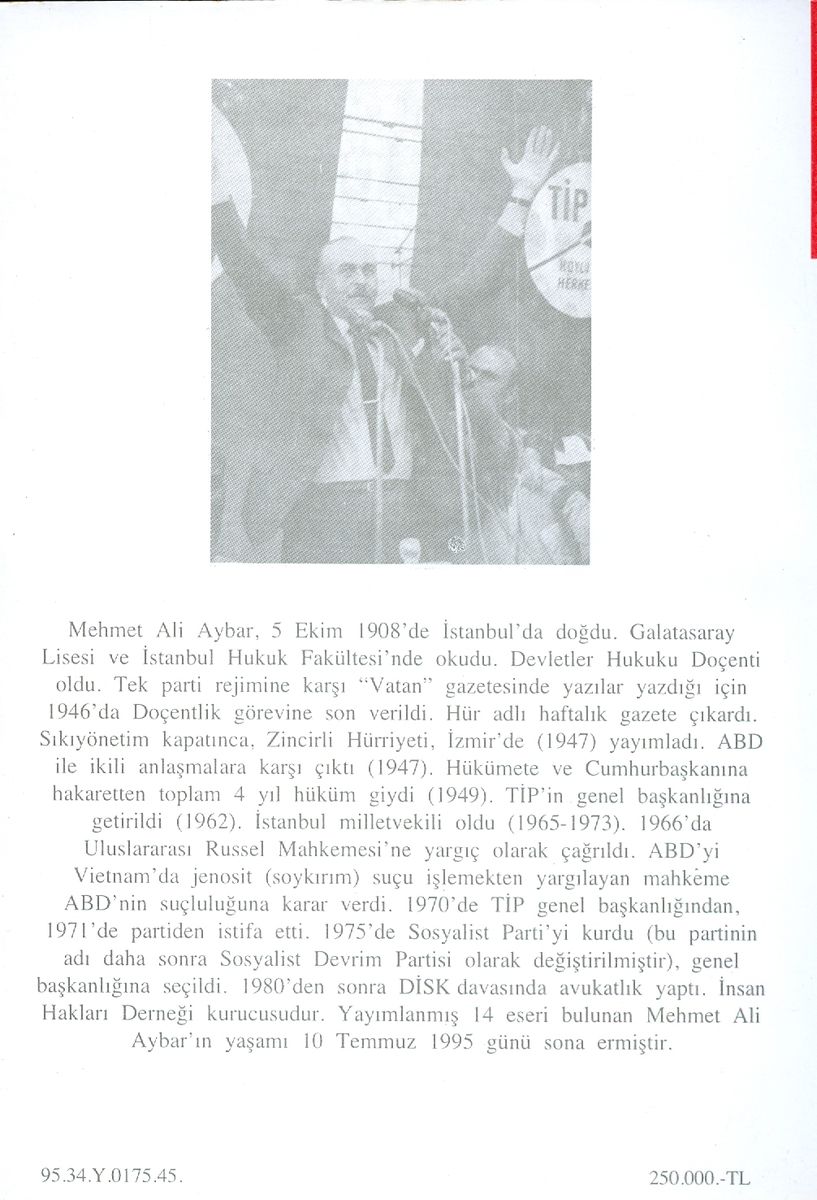 Azgelişmiş ülke kapitalizmi ile bir yere varamayız; ilerlemiş ülkeleri yakalayamayız. Nitekim 200 yıldır bir yere varamadık, çemberi kıramadık. İlerlemiş ülkelerle aramız daha da açıldı. Üstelik bu düzende emekçi halikımızın insanca yaşaması da olanaksız. Bir avuç insan, holdingleri ile bir avuç insan da holdinglerin koruyucusu olarak, bu dışa bağımlı sömürü düzenini sürdürüyorlar. Ve de sen emekçi arkadaş, her gün biraz daha ufalan ekmeğinle yaşamaya uğraşıyorsun, mütevekkil... Görmüyor musun haksızlıkları? Görmüyor musun sırtından gününü gün edenleri? Oysa 20 yıl önce bir umut belirmişti: senin gibi emekçi 12 kişi Türkiye İşçi Partisi'ni kurmuştu. Ve 1965 seçimlerinde bu parti Millet Meclisi'ne 15 milletvekili sokmuştu. 15 kişi nedir deme... Tüm öteki partileri hizaya getirmişti. Her konuşmada, ilk kez sen vardın meclis kürsüsünde. Senin dertlerin dile getiriliyordu... Tabii yasaları değiştiremiyordu bu 15 işçi temsilcisi. Ama haksızlıkları her vesileyle vurguluyordu. Besbelliydi ki, ileriki seçimde daha çok milletvekili çıkaracaklardı... Yasayı değiştirdiler. Parasız bir partinin Millet Meclisi'ne girmesini çok, çok zorlaştırdılar. Ve 1969'da Tip Meclise sadece iki milletvekili sokabildi. Partinin başını yemek için uğraşılıyordu. Nihayet Anayasa Mahkemesi Türkiye İşçi Partisi'nin kapatılmasına karar verdi. 1975'te emekçi halkın haklarını savunan partiler gene kuruldu. Ve 12 Eylül darbesi bu partileri de kapattı. Millet Meclisi'ni ve öteki partileri kapattığı gibi... Ve ardından devrimci sendikalar (DİSK) hakkında davalar açıldı. Yöneticileri hapse atıldı. Yeni yasalar çıkartıldı. İşçi hakları, özgürlükleri, toplantı ve gösteri hak ve özgürlükleri, düşünce özgürlüğü iyice sınırlandırıldı. Bu yok edilen özgürlükler, aslında senin özgürlüklerindi, emekçi arkadaş. Senin haklarının savunulmasını hedef alan yasaklardı. Yani 12 Eylül darbesi aslında sana karşı yapılmıştı. Ama generallerin gösterdiği gerekçe anarşi idi. Anarşiye dur demek için Devlete el koymuşlardı. Öyle diyorlardı. Ama her yerde Sıkıyönetim vardı. Neden anarşik olayların üzerine gidilmemişti. Neden anarşi ile gereği gibi mücadele edilmemişti? Sanki 12 Eylül'e zemin ve gerekçe hazırlanıyordu.