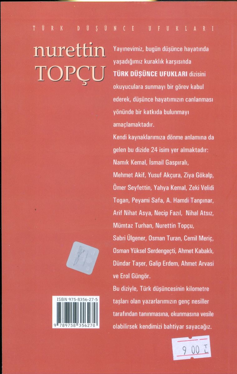 Türk Düşünce Ufukları serimizin en önemli isimlerinden biri şüphesiz Nuretin Topçu'dur. Namık Kemal ile başlayan ve Prof. Dr. Erol Güngör'e kadar uzanan Batı düşüncesi çerçevesinde geleneği sorgulamak ve yine onun temelleri üzerinden yeni bir ufuk turu yakalamak cehdi, Üç Tarzı Siyaset(Osmanlıcılık-İslamcılık-Türkçülük), ardından Kemalizm ve Anadoluculukla yeni açılımlar kazandı. Cumhuriyet'in ilk yıllarında aydınlar özellikle Batılılaşmanın getirdiği telaşlı arayışlarla kendi kabuğu içinde zaman zaman kendi toplumuyla kavgalı oldular. Pozitivizm modası bir zamanlar aydınlarımızda din gibi yerleşti. Oysa aynı devrelerde yine Batı'da ruhçu-maneviyatçı düşünceler-doktrinler de vardı. Aydınlarımızın çoğu bunları görmezden geldiler. Bu kabuğuna çekilme, aydınlarımızda fikri gelişimi engelledi ve bu da şüphesiz Türkiye'nin önünü tıkadı. İşte böyle bir zamanda Fransa'da Blondel'in Hareket felsefisinden yararlanan, Batı'yı tahlil ederken ruhçu maneviyatçı akımları da gözardı etmeyen ama toprağına bağlı bir fikir adamı Nuretin Topçu, Türkiye'nin bugün de önünü açacak, coğrafyaya dayalı milliyetçilik projesini ve bin yıllık tarihi terkibi yeniledi. Türkçülüğü, İslamcılığı, sosyalizmi buluşturdu.