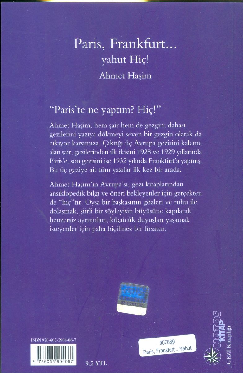 Bu üç geziye ait tüm yazıları bir araya getiriyor bu kitap. Bu açıdan bir ilk olma özelliğini de taşıyor. Çünkü 1928 Paris gezisinin notlarının büyük bölümünü "Bir Seyahatin Notları" alt başlığı ile Bize Göre kitabına almış, 1932 yılında yaptığı Frankfurt gezisini de Frankfurt Seyahatnamesi başlığı altında yayımlamıştı Ahmet Haşim. 1929 Paris gezisine dair yazıları ve 1928 gezisinin Bize Göre'ye alınmayan parçalarıysa İkdam gazetesinin sayfaları arasında kalmış, ancak Eylül 1991'de Dergâh Yayınları tarafından yazarın gazetedeki öbür yazıları ile kitaplaşmıştı. Yazarın tüm gezi yazılarını ilk kez bir araya getiren bu kitap, Ahmet Haşim'in gezi edebiyatı külliyatına katkısını bütünlüklü bir şekilde sunmayı amaçlıyor.