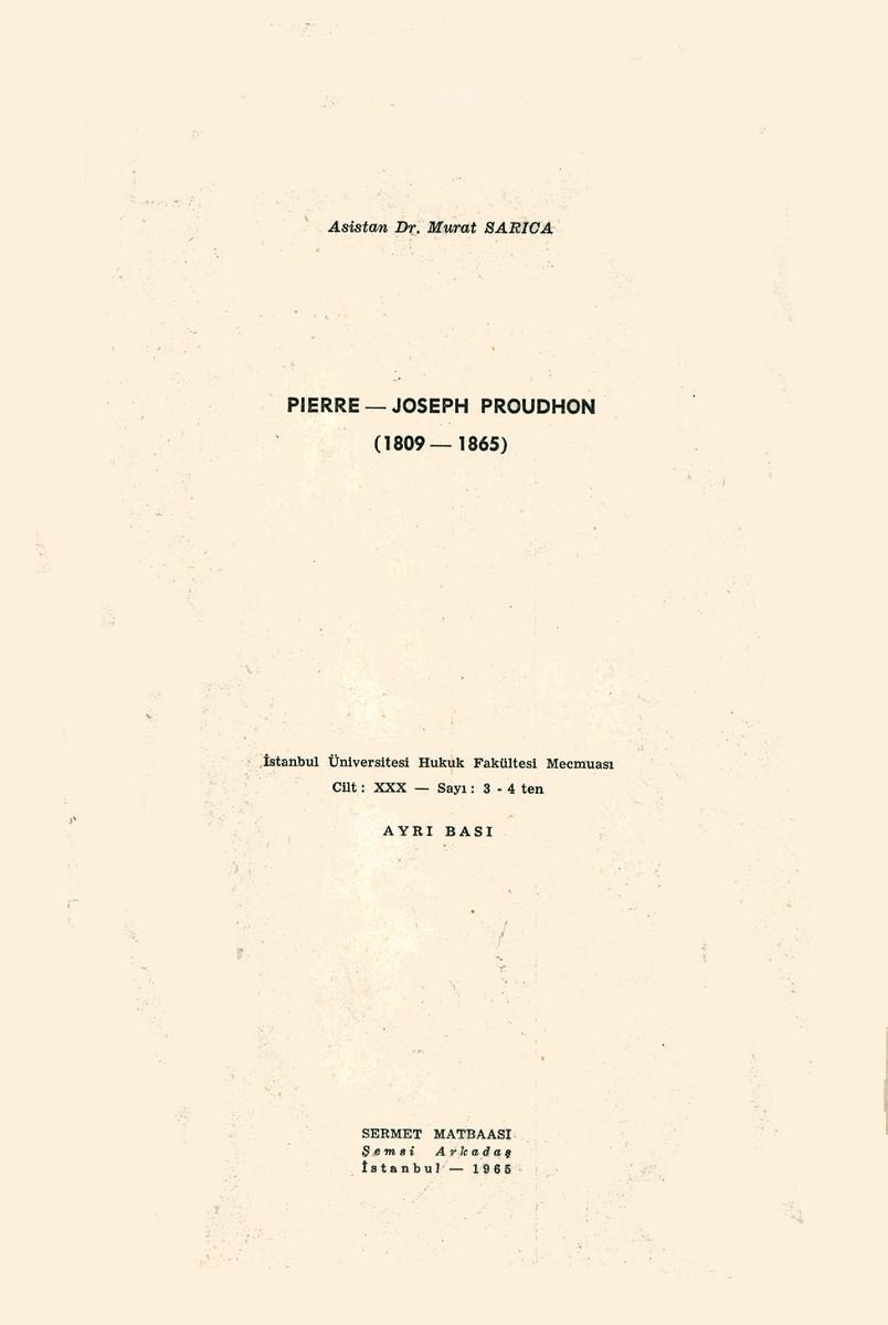1809 yılında Besançon'da doğan Pierre Joseph Proudhon fakir bir ailenin çocuğudur. İlerde yazacağı kitaplarda bu fakirlik içinde geçen yıllarını kuvvetli çizgilerle anlatmayı ihmal etmemiştir. Daha gençliğinde işçi sınıfına sadık kalacağına ve onu, içinde bulunduğu şartlardan kurtarmak için bütün gayretini sarfedeceğine yemin etmiştir. Bu yoksulluk yıllarını anlatırken yoksulluğu şu şekilde tarif etmektedir: "Yoksulluk insanı alçaltıp değersizleştirir, yavaş yavaş kendine layık hale getirir" ı.