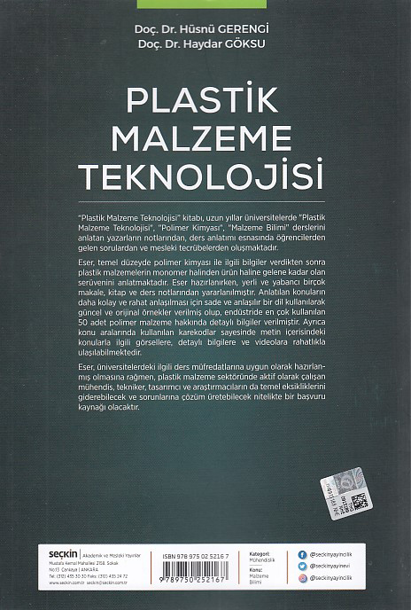 Kitabın öğrencilerimize ve plastik malzeme sektöründe çalışan mühendislere yardımcı olmasını ümit ediyoruz.