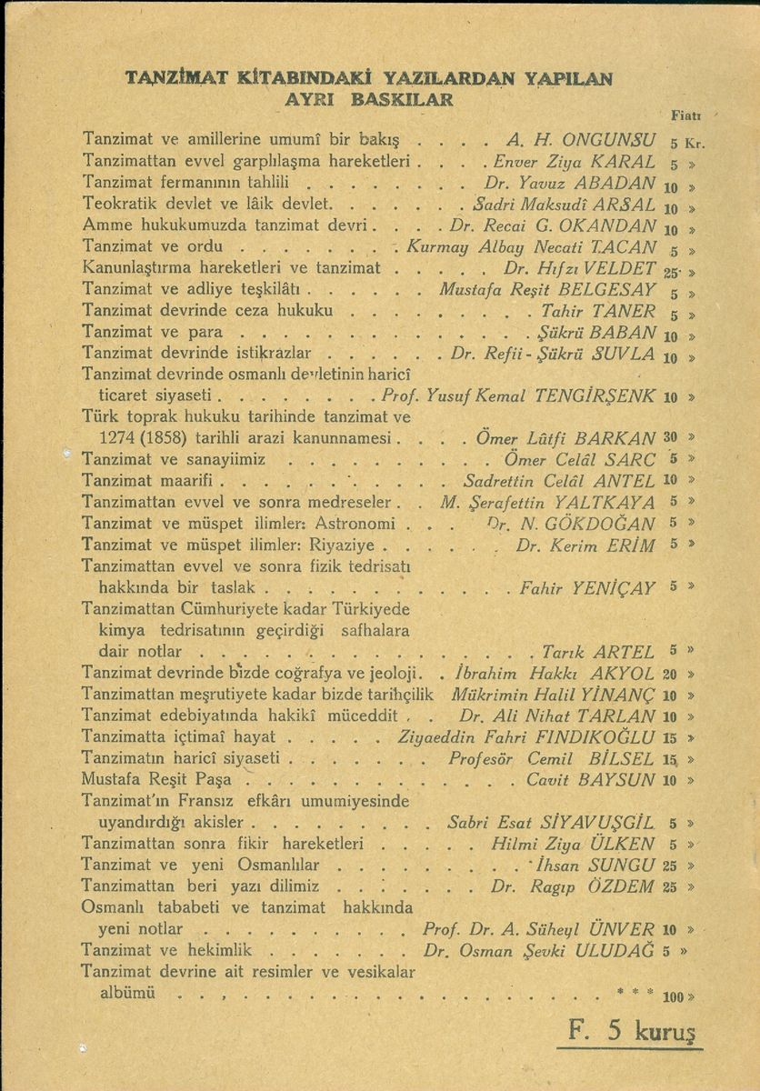 Tanzimat, Karlofça muahedesinden beri Osmanlı Devletinin birbirini takip eden mağlubiyetlere bir nihayet vermek için yaptığı teşebbüslerin neticesidir: Ordunun ıslahı, Garp tekniğinin kabulü, Garp ilminin talimi gibi hareketlerle başlayan garplılaşma cereyanı nihayet devletin imparatorluk halkına neşrettiği bir "charte" ile umumi bir reform şeklini aldı.