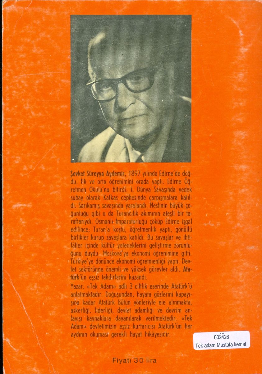 Ölümünün daha otuz altıncı yılında, kendisi hakkında, çeşitli dillerde bu kadar eser yayınlanan ve bu eserler durmadan artan insan, üzerinde düşünülen insan demektir. Kendisinden ürkülmeden, korkulmadan ve hayatının hikâyesi, hem kendi halkı, hem başka halklar üstünde estirilmiş kanlı bayraklardan ve kan sellerinden ibaret olmayan, yalnız saygı ve insani ilgilerle izlenen insan ise, insanlığın nadir yetişmiş evlatlarından biri sayılmalıdır. Atatürk, insanlığın böyle bir çocuğuydu. Biz de, bütün ona yönelenlerden biri olarak "Tek Adam" da, onu düşünmek, onu anlamak ve onu anlatmak çabası içindeyiz. Şimdi, büyük sayılarda V. baskısını veren dizimizin amacı budur.