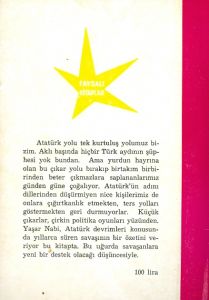 Bizim için Atatürk'ü izlemekten başka çıkar yol bulunmadığına inancımı bıkmadan, usanmadan tekrarladım yüzlerce yazımda. İstedim ki yurdumuzun geleceği ve kalkınması konusunda bugünkü kanılarımı da yansıtan o yazılardan hiç değilse bir kısmı, gazete ve dergi sayfalarında dağılıp kalmaktan kurtulup bir kitap haline gelsin ve Atatürk gençliğinin yeni kuşaklarınca da okunsun.