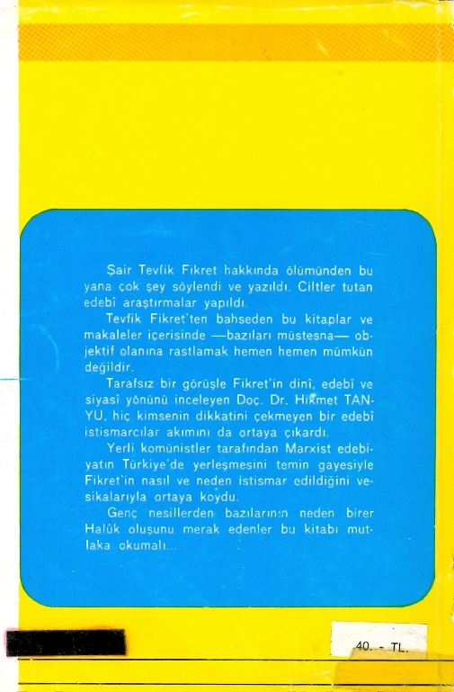 Türk Dili ve Edebiyatı Öğretmeni Nejdet Sançar'ın ve Büyük Türk Şairleri ve Yazarları Komisyonunun teklif ve ilgililerin ısrarlı istekleriyle, Tevfik Fikret'in dini yönü tarafından uzun bir makale halinde incelenmesi ve tamamlanıp komisyona sunuluşu 1968 yılında olmuştu. Bin Temel Eserler'in akıbeti gibi Büyük Türk Şairi ve Yazıları hakkındaki basım ve yayın da durdurulmuştu. Aradan yıllar geçmesine rağmen bu yazılar dosyalarda beklemeye devam ediyordu.1971 yılında konuyu tekrar ele alıp öncekinden çok fazla geliştirerek bir kitap haline getirmeye çalıştım.