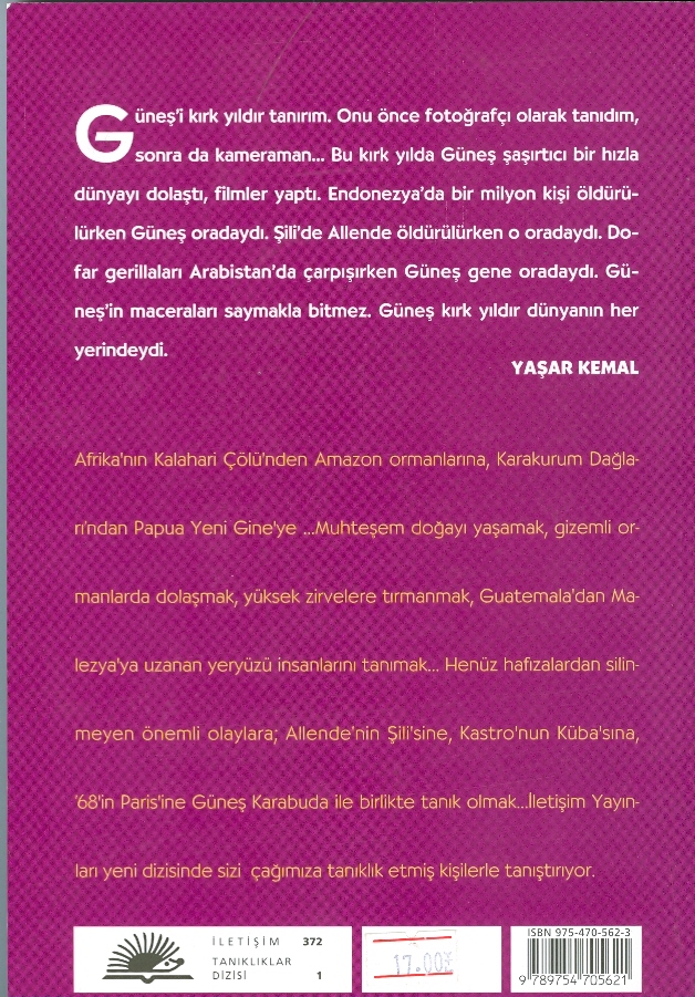 Güneş'i kırk yıldır tanırım. Onu önce fotoğrafçı olarak tanıdım, sonra da kameraman... Bu kırk yılda Güneş şaşırtıcı bir hızla dünyayı dolaştı, filmler yaptı. Endonezya'da bir milyon kişi öldürülürken Güneş oradaydı. Şili'de Allende öldürülürken o oradaydı. Dofar gerillaları Arabistan'da çarpışırken Güneş gene oradaydı. Güneş'in maceraları saymakla bitmez. Güneş kırk yıldır dünyanın her yerindeydi. Güneş, Türkiye'de doğmuştu. Ülkesini seviyordu. Dünyanın neresine giderse gitsin onun çantasında bir parça Türkiye mutlaka vardı. O, dünyayı, savaşları, yıkımları yaşarken ülkesinden de ayrılmıyordu. Her yıl birkaç kez yurduna uğruyor, Türkiye üstüne bir film yapıyor, ya da Türkiye üstüne bir kitap yazıyordu. Eşi yazar Barbra ile kendilerini ne kadar sanatlarına, işlerine adamışlarsa o kadar da Türkiye'ye adamışlardı. Kalıbımı basarım ki, Türkiye'nin dünyada tanıtımına onlar kadar çok az kişi yardım etmiştir. Onlar Türkiye için canlarını dişlerine takmış çalışırlarken, bizimkiler onları yargıyla, hapishanelerle, karakolların gözaltılarıyla ödüllendiriyordu. Güneş, bu dünyanın her zaman öbür ucundaki adam, savaşların, soykırımların, zulümlerin, işkencelerin ülkelerinde daha olaylar bitmeden, yerden biter gibi bitiyordu. Elinde şimşek gibi kamerası, kalemleriyle ve eşiyle. Güneş büyük bir birikimdir. Bir insanlık, bir sevgi, bir dostluk birikimidir. O her koşulda dünyaya ve ülkemize yardım etmiştir. Bir ömre doksan tane, dünyanın türlü olaylarından, maceralarından derlenmiş belgesel film nasıl sığarsa! Güneş sığdırmıştır. Bana gelince Güneş'in ve Barbra'nun dostluğu benim için en değerlidir. Onlardan, uzak dünya üstüne çok şey öğrendim. Onu, Amazon Ormanları'na giderken ben uğurladım Arlanda Havaalanı'ndan. Dönerken de ben karşıladım. Oradan bana Amazon Ormanları'nın kırımının, insanlık dışı maceralarıyla ağaçların tepelerinde biten, oralarda açan görkemli çiçeklerin maceralarını da getirmişti. Olağandır ki, bir de dünya güzeli bir belgesel getirmişti. Japonlar kâğıt yapmak, ne bileyim, başka işlerde kullanmak için Amazon Ormanları'nı köklerinden söküyorlar... YAŞAR KEMAL