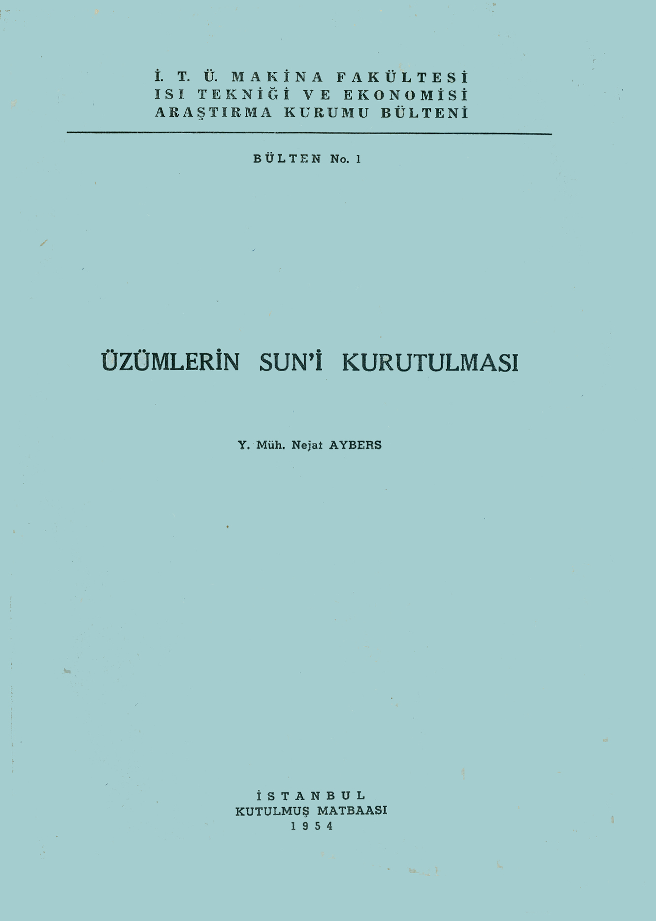 İ.T.Ü. Makine Fakültesinin bir öğretim elemanı ve İ.T.Ü. Isı Tekniği ve Ekonomisi Araştırma Kurumunun (İ.T.Ü.I.K.) bir üyesi olarak, tetkik ve araştırmalarda bulunmak üzere gitmiş bulunduğum Birleşik Amerika'da "The Trane Company" firmasında misafir mühendis olarak çalışmakta olduğum sırada, firmanın piyasaya arzetmekte olduğu çeşitli ısıtma ve soğutma malzemesinin, endüstride ısı tekniği ile ilgili her türlü hususi problemlerin cevabını teşkil edebilecek kabiliyette olduğunu gösterecek mahiyette araştırma ve neşriyatta bulunmak tatbikat mühendislerini ve reklam bürosunu işgal eden bir konu idi. Bu cereyana uyarak memleketimizi çok alakadar eden, gıda ve ziraat endüstrisi ile ilgili bazı konular üzerinde çalışmak fırsatını buldum. Bunlar meyanından bu bültende takdim etmiş olduğum bu küçük çalışmayı, memleketimizin kalkınma hamlesinde faydalı olur ümidi ile ilk olarak neşretmeği uygun buluyorum.