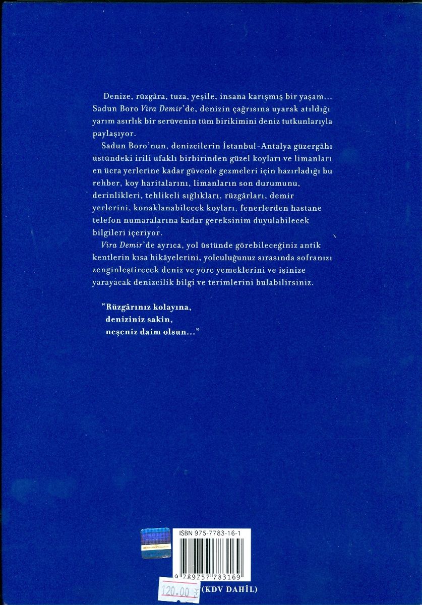 Doğrusu uzun yıllar biraz bencil düşündüm. Ücra, ıssız koyların gene öyle kalması için benim de yazmaya elim varmadı. Sonra yaş ilerledikçe, her yıl biraz daha eksilip yok olan bu doğa nimetlerini hem denizcilerin kullanımına sunmayı, hem de ileriki nesillerin ne kadar zengin sahillerimiz olup da kıymetini bilmeden ormanlarını yakmış, denizini kirletmiş, bakir koylarını nasıl betonla doldurmuş olduğumuzu ibretle bilmelerini istedim.