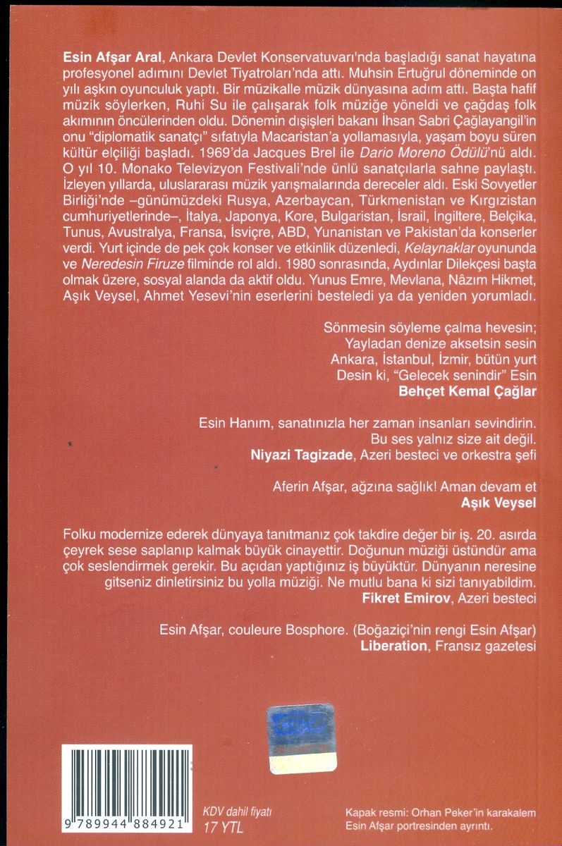 Esin'tiler, kaleme aldığım ilk anı kitabı değil. 1995'te yayımladığım Anılar Yanıltır mı?'da çocukluğumdan 1994'e dek uzanan yılların hatıralarını kaleme almıştım. Elinizde tuttuğunuz bu kitap ise geçtiğimiz aylarda tamamlandı. Ne var ki bu yeni kitabı, ilk kitabın bıraktığı yerden devam eden bir metin olarak sınırlamak istemedim. Bu kitabın ilk bölümleri için Anılar Yanıltır mı?'yı elden geçirdim. Böylece çocukluğumdan bu yana tüm hayatımı ve 2009'da 40. yılını dolduracak olan sanat hayatımın neredeyse tamamını kesintisiz olarak anlatma şansım oldu.