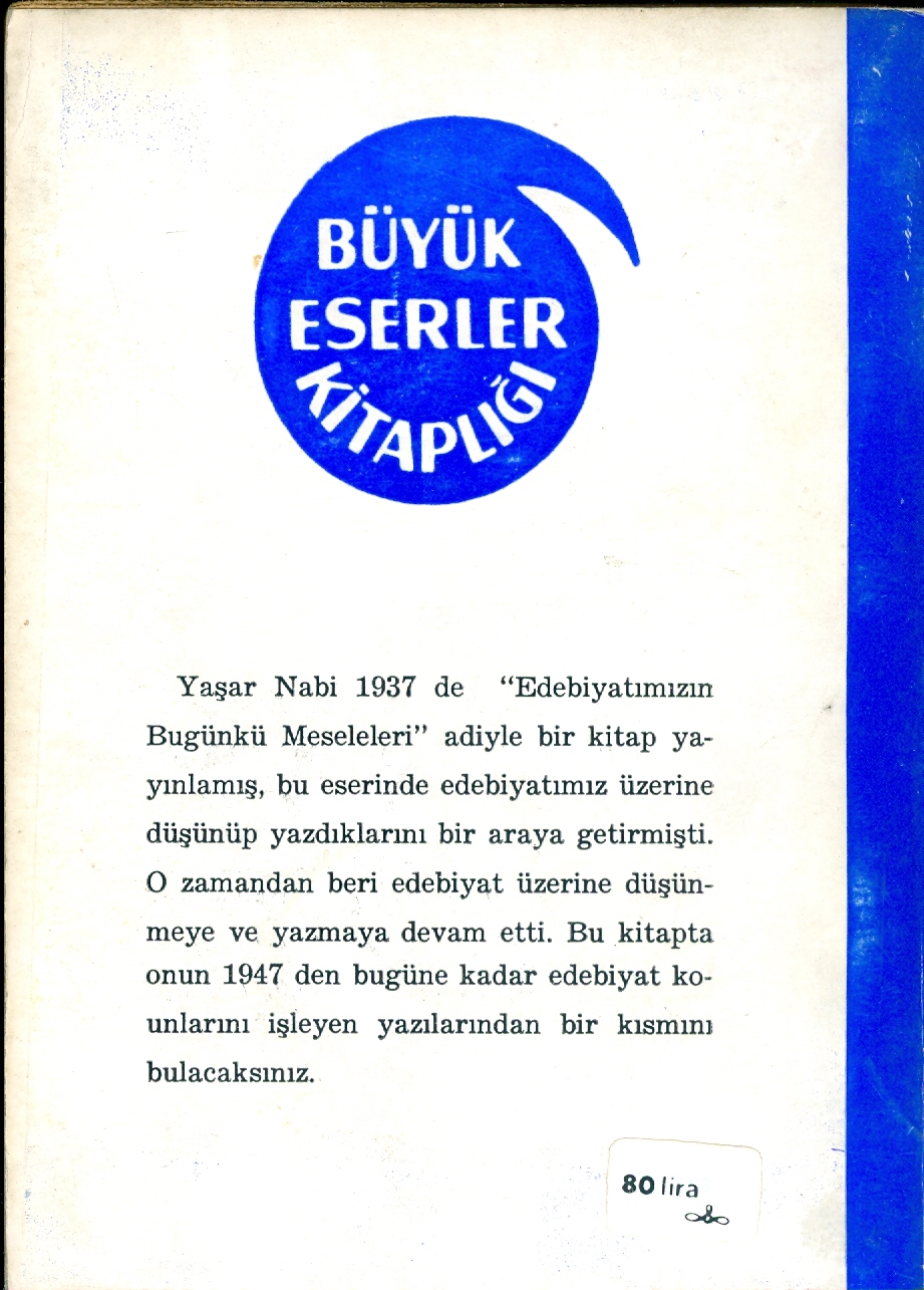 Edebiyatımızın Bugünkü Meseleleri" adında bir kitap yayınlamıştım, 1937 yılında. Günümüzün edebi· yatını türlü yönlerden ele alarak inceliyordum o eserimde. Dili hayli eskimiş olsa da bugünkü kanılarıma aykırı düşmeyen o kitaptan sonra edebiyat üzerinde düşünmeye, düşündüklerimi de zaman ve fırsat buldukça yazmaya devam ettim. 1947 ile 1957 arasında, on yıl içinde Varlık'ta çıkan edebiyat üzerine yazılarımdan seçilmiş bir demeti 1959 da "Yıllar Boyunca" adlı bir kitapta topladım. Uzun zamandan beri tükenmiş olan bu kitabı yeniden gözden geçirerek dilini özleştirdikten başka daha sonraki yıllarda çıkmış yazılarımdan bir bölümünü de kattım sonuna.